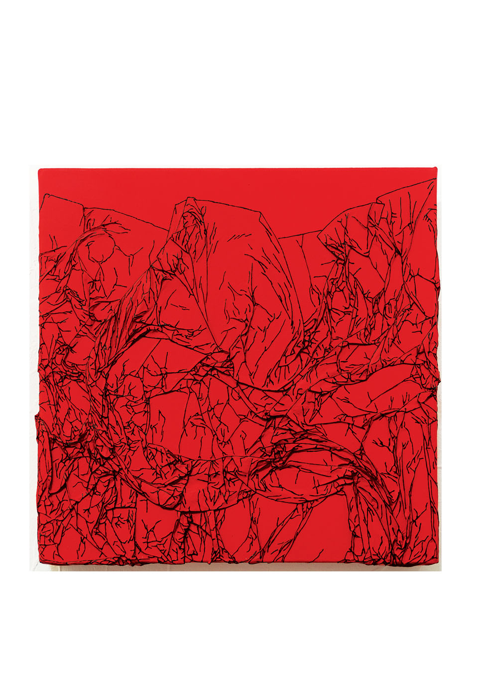 Arbre de vie rouge / noir – 30 x 30cm – technique mixte – © Annie Thérie peinture, acrylique, trait, couleur, papier, collage, arbre, vie, arbre de vie